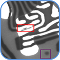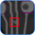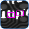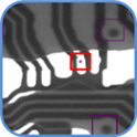 依據客戶的要求,設定金手指的間距,當偵測出間距不足時,軟體便會框選出